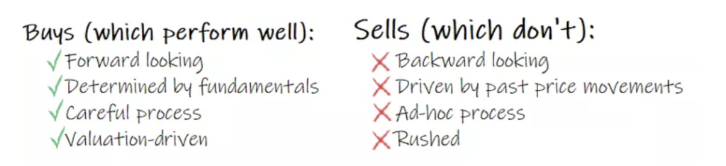 The sell decisions of professional investors are so bad that they performed worse than chance. That’s rough. But the buy decisions did add value, so it’s not that fund managers have no idea about investing. Instead, the authors found a flawed process where selling doesn’t receive adequate attention: